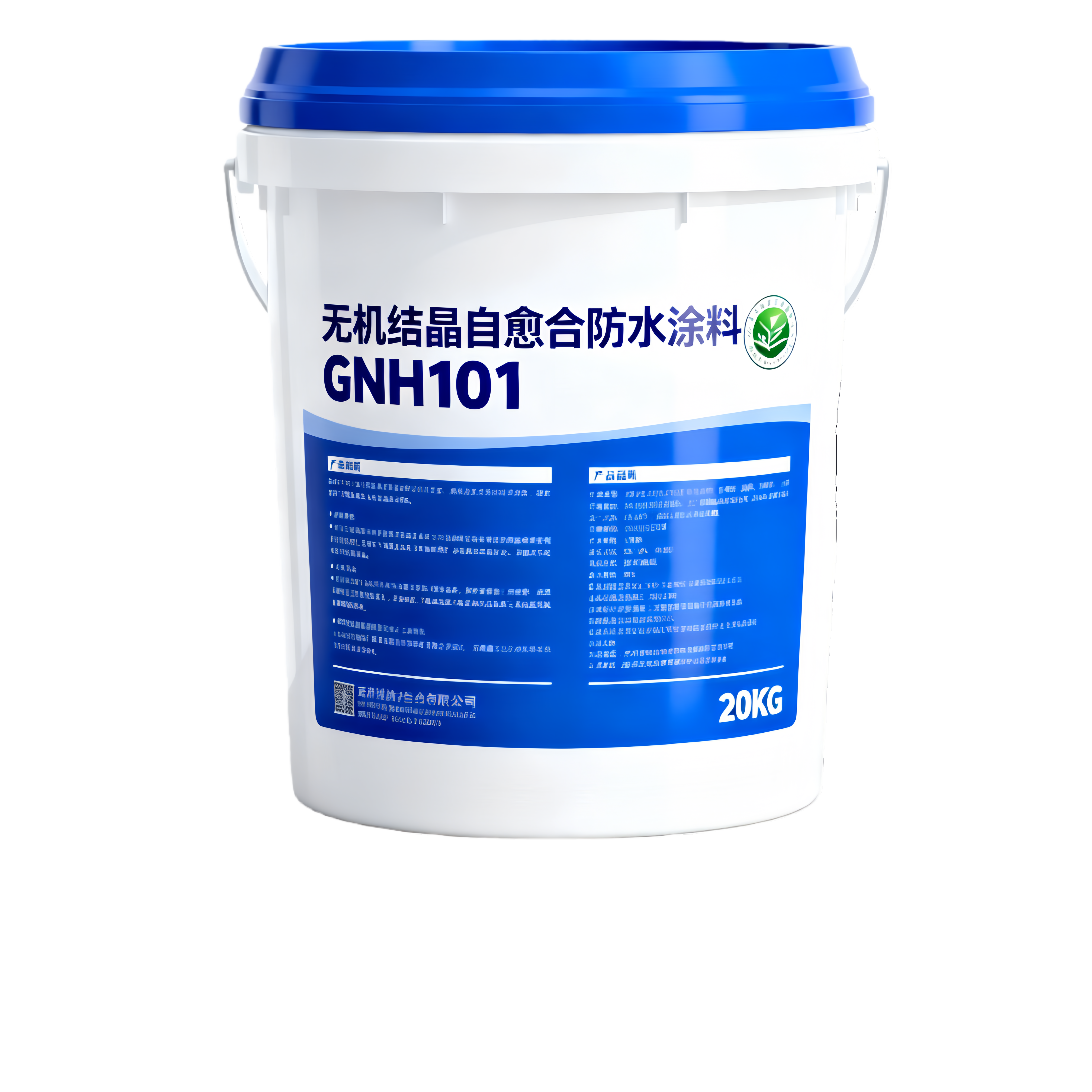 产品介绍:无机结晶自愈合防水涂料 GNH101 是一种绿色环保的刚性防水材料,以无机硅酸盐为主要成分,适用于混凝土结构的防水工程,具有渗透结晶、自修复裂缝、耐高低温、抗老化等特性,20KG 桶装设计便于施工存储。