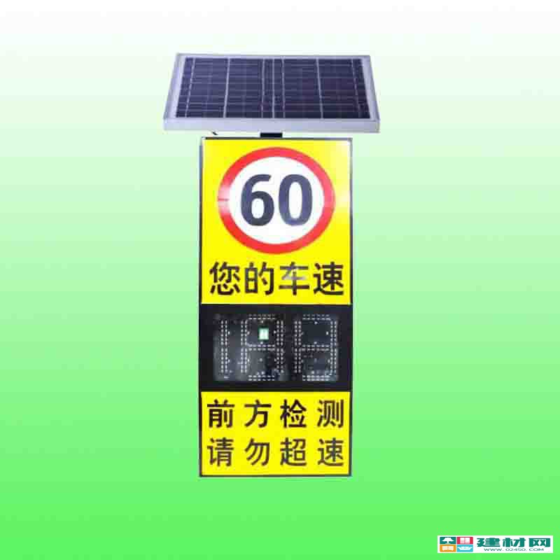 太阳能雷达测速仪:是通过微波雷达来测量路面上车辆行驶的速度,测速原理是多普勒工作原理,雷达测速标志利用微波照射行驶中的车辆,并从返回的微波信号中提取出目标速度信号,再转换成相应的车速值,又要和系统中的限速值进行对比,若测速的速度大于限速值,则以红色字体来显示所检测的速度值,若小于限速值,则以绿色字体来显示检测速度值。