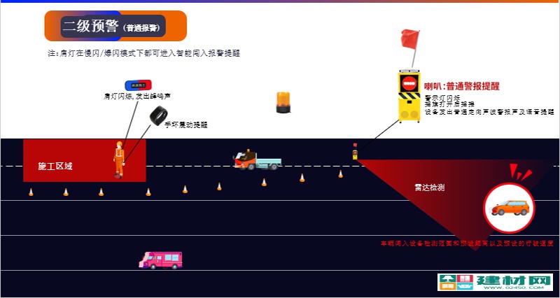 雷达检测声光摇旗机主要应用于道路施工或维护作业,防止发生事故, 为工作人员筑起一道生命的防护墙。