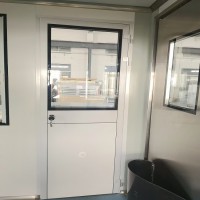 铝合金彩钢板门门框与门扇之间配合严密,可有效缩小缝隙,减少尘埃颗粒通过缝隙渗透的可能,门体在长期使用中不易变形,保障门扇与门框贴合度,保持密闭性能,维护净环境长时间的稳定性。